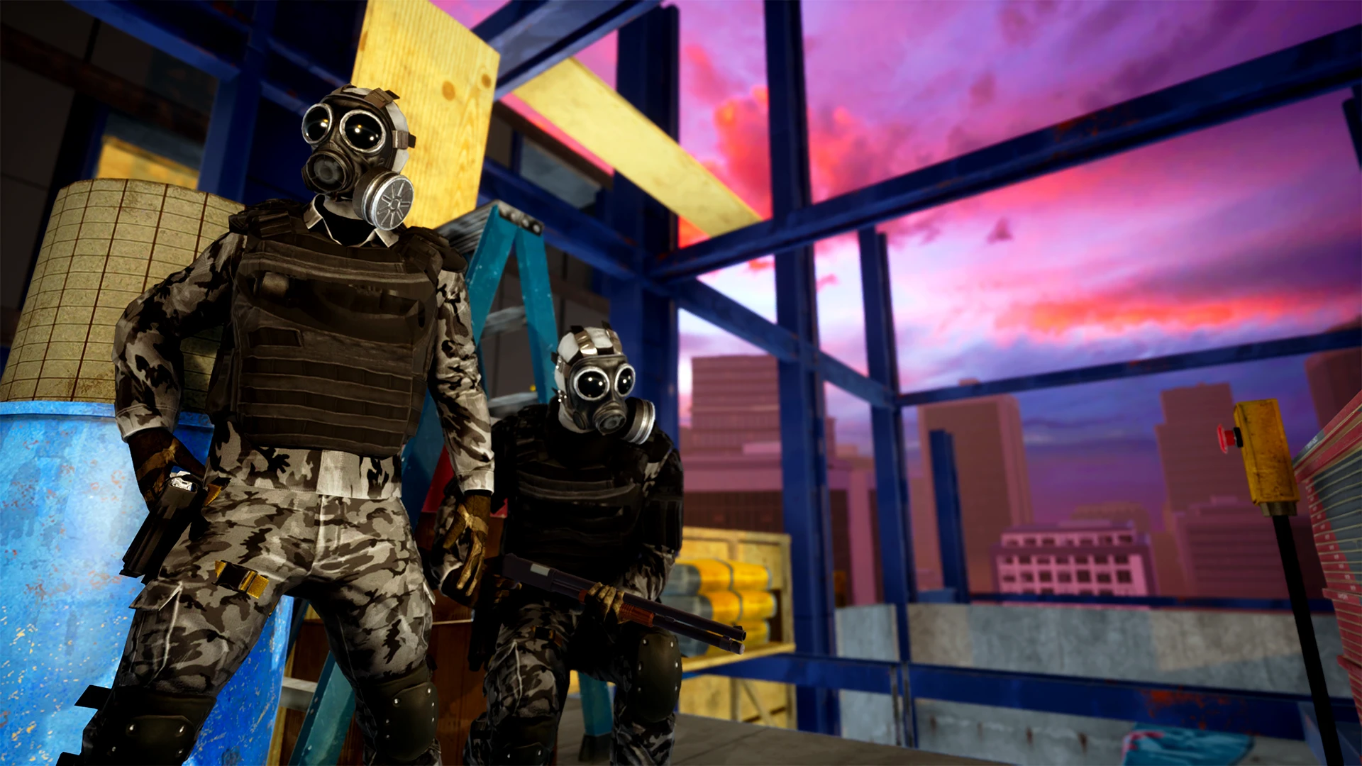 Захватывайте базу и разрушайте постройки. Перемещайтесь между площадками и используйте автобус как укрытие.